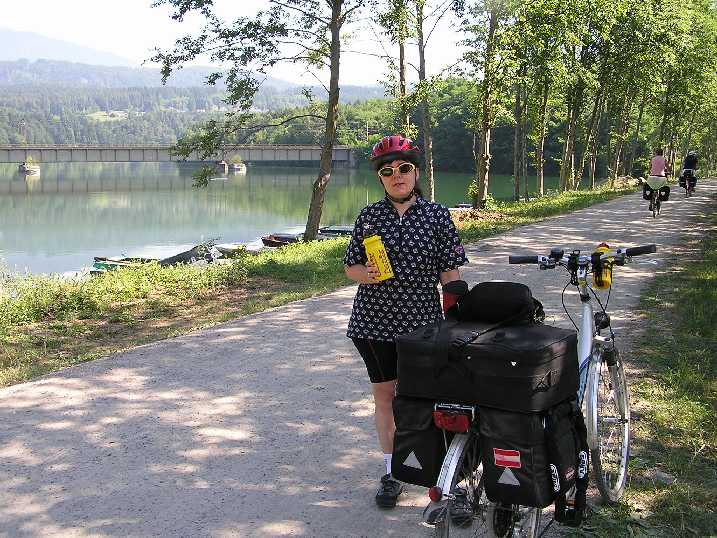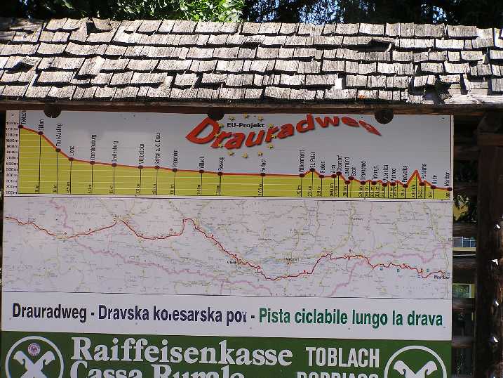 Drauradweg Start in Silian Pension Heidi Der Wegverlauf Bacherl Lienz Am Radweg Dellach Ilse Herbert Regina Die Damen sagten...und Tschüss Bildstock bei Möllbrücke Spittal a d Drau Eine Bachquerung Villach Hauptplatz Stadtpfarrturm kurze Rast romantisches Flußufer Unsere Pension in Ferlach Klopeinersee Giny beim schwimmen gemütlicher Abend Kirche von Glainach Jauntalbrücke Hängebrücke bei St. Luzia Am Ziel Wegweiser End Station St. Paul