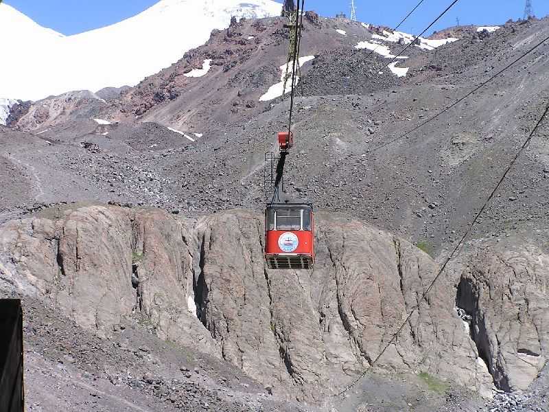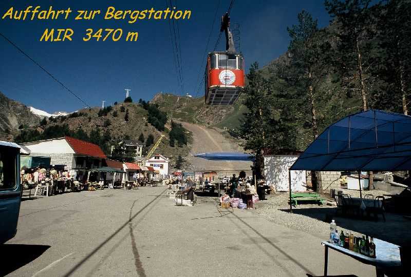 Bei der Talstation Auffahrt zur Bergstation MIR Garabachi-Biwak Der Elbrus mit seinen beiden Hauptgipfeln