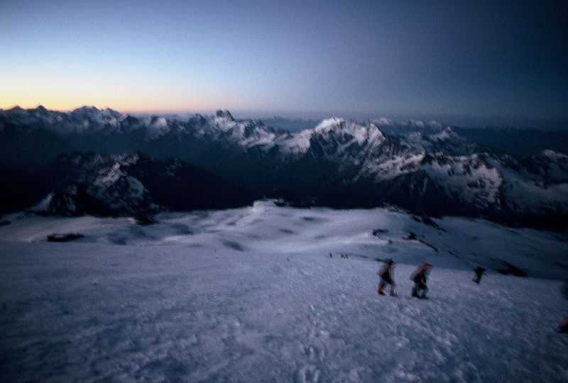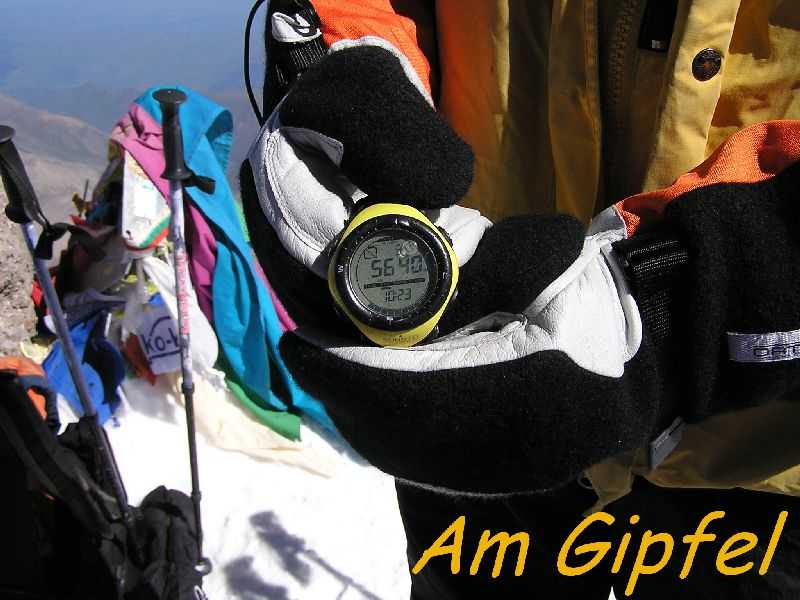 Beim Gipfelsturm Sonnenaufgang ca. 6h Letzter Steilhang vor dem Sattel Endlich oben 10h23