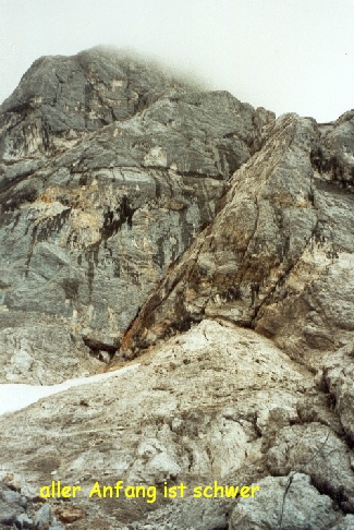 Zustiegs Schneefeld Adlerhorst Spreizschritt im oberen Wandteil Dachstein-Südwand-Hütte