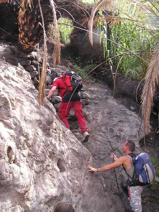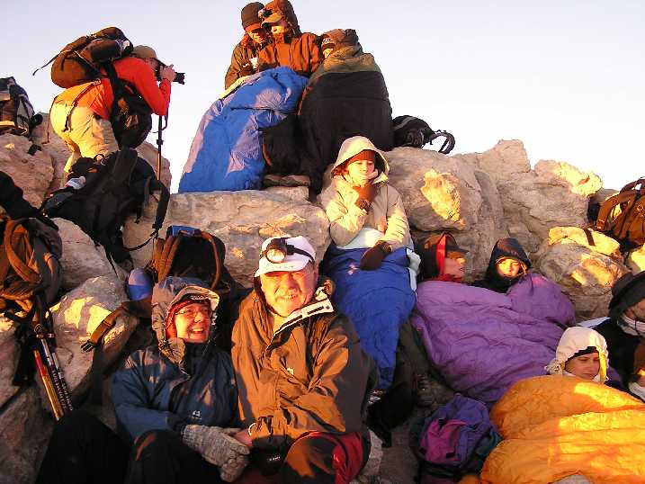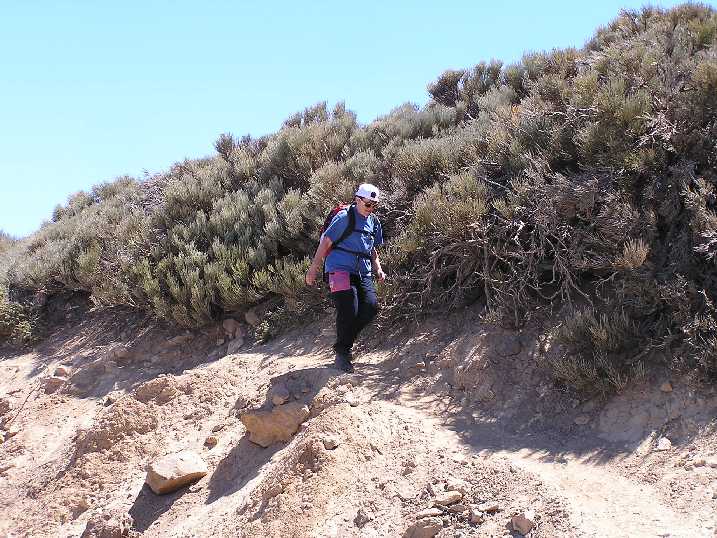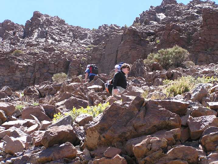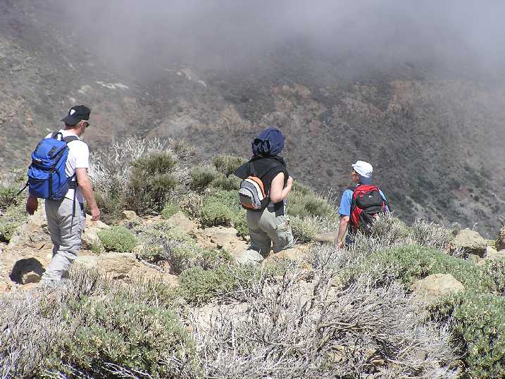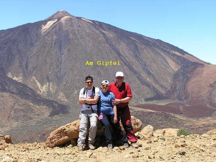 Am Samstag den 17. Mai 2008 um 11h30 flogen wir auf die Kanareninsel Teneriffa. Unser Hotel, das „Perla Teneriffa“, lag im Norden der Insel, in Puerto de la Cruz., etwas abseits vom üblichen Touristen-Rummel mit herrlichem Blick auf den (meist wolkenverhangenen) Teide - Wegen dem wir eigentlich gekommen sind. Den Sonntag Vormittag verbrachten wir mit diversen Vorbereitungen für unsere geplanten Touren und zum organisieren eines Leihautos. Am Nachmittag besuchten wir den Loro-Park und hetzten von einer Tier-Show zur anderen. Fotos Loro-ParkMontag, 19. Mai - Akklimatisationstour auf den 2715m hohen Guajara, eine der höchsten Erhebung des sogenannten „Caldera-Randes“.Nach dem Frühstück fuhren wir mit Maria und Ralf im Mietauto hinauf in den Nationalpark. In der Nähe des Parador Nacional de las Canadas, am Parkplatz bei der „Fuente de la Piedra“ (Quelle), stellten wir das Auto um 11h30 ab. Das Wetter da oben war herrlich, wir waren sozusagen über den Wolken. Nachdem wir bei der dort stationierten Parkaufsicht bzw. Bergwacht unser Vorhaben gemeldet haben und eine, wenn auch ungenaue, Wanderkarte in den Händen hielten, zogen wir los. Über sanft ansteigende Bims-Hänge folgten wir einer schmalen Spur. Allmählich wurde der Weg steiler und zog in Serpentinen einen breiten Bergrücken hinauf zu einem langen, steilen Felsabbruch. Diesen in westlicher Richtung entlang bis zu dessen Ende. Der nun grau bzw. mit Steinmandln markierte Weg führte uns in östlicher Richtung durch eine Geröllrinne und über einen Kamm-Ausläufer zum Fuße der Guajara-Nordwand. Über ein breites, aber sehr luftiges, Felsband aufsteigend, gelangten wir nach kurzer Zeit auf den Vorgipfel. Nun mussten wir noch einige größere Felsblöcke überklettern und schon standen wir nach 2 ½ Stunden Aufstieg auf dem Gipfel. Weitere 1000m über uns lockt der Gipfel des Teides. (2 Tage später waren wir oben) Nach einer längeren Gipfelrast machten wir uns an den Abstieg. Erst gingen wir den Weg in südlicher Richtung, wobei wir aufpassen mussten, dass wir nicht noch ganz oben vom rechten Weg abkamen. Es gibt sehr bald eine Abzweigung nach links, die aber um den Gipfel herum zur Aufstiegsroute führt. Bei der ersten großen Abzweigung hielten wir uns links und stiegen über Geröllfelder talwärts. Der Weg führte uns nun in westlicher Richtung zwischen ausgetrocknete Strauchfelder und Geröll zu einer Schotterstraße, die uns wieder zum Ausgangspunkt führte. Ich freute mich schon auf ein kühles Bierchen, doch leider war das Restaurant schon geschlossen. Es war gerade 18 Uhr, das Büro der Bergwacht bzw. Parkaufsicht war auch schon geschlossen und so konnten wir uns auch nicht zurückmelden (ich hoffe die suchen nicht nach uns!). Rechtzeitig zum Abendessen waren wir wieder in Hotel, wo Ilse schon auf uns wartete. Fotos GuajaraDienstag, 20. MaiFür die Besteigung des Teides haben wir uns 2 Tage vorgenommen, denn wir wollten im Refugio de Altavista, eine Schutzhütte auf 3260m, übernachten. Außerdem schlossen wir uns einer geführten Gruppe an. Dadurch ersparten wir uns das aufwändige Besorgen der Sondergenehmigung für die Besteigung und konnten sicher sein, einen Schlafplatz in der Hütte zu haben. Um 14 Uhr wurden wir mit einem Bus von unserem Führer und 8 weiteren Gipfelstürmer abgeholt. Ilse, Maria und Ralf waren nicht dabei. Wieder ging es hinauf in den Nationalpark, die Strecke kannten wir schon von unserer gestrigen Fahrt. Bei einem kleinen Parkplatz, auf 2350m, -Abzweigung des Fahrweges in Richtung Teide, starteten wir den Aufstieg. Zuerst folgten wir dem gemütlich ansteigenden Fahrweg. Langsam schlängelte sich der Weg in großen Serpentinen an den Berg heran. Nach einigen Kehren sahen wir riesige, kugelförmige Lavabrocken, die sogenannten Teide-Eier. Wir stiegen höher, bis zur Abzweigung des eigentlichen Gipfelpfades. Diesem folgten wir, es wurde steiler und wegen des „bröseligen“ Lavagesteins unangenehm zu gehen. Aber auch diese Hürde schafften wir ohne Probleme, für kurze Zeit wurde der Weg wieder etwas flacher und wir konnten (besser gesagt, ich konnte) etwas ausschnaufen. Nun waren wir schon knapp 3 Stunden unterwegs. Weiter ging es in Serpentinen über langgestreckte Lavafelder und nach etwa weiteren 40 Minuten waren wir beim Refugio de Altavista auf 3260m. Zum Nachtmahl kochte Helmut, unser Bergführer, einen riesigen Topf Erbsensuppe mit Würstchen und dazu gab es köstlichen spanischen Rotwein – was für ein Leben! Anschließend war Bettenvergabe und da wir zeitig in der Früh aufstehen sollten, gingen wir bald schlafen. Mittwoch, 21. Mai Um 4h45 wurden wir unsanft aus den Träumen gerissen, dafür dampfte der Kaffee schon in den Tassen. Wieder von Helmut zubereitet. Schnell noch ein paar Bissen Brot aus unserem Lunchpaket, das wir von unserem Hotel mitbekommen haben und um 5h30 zogen wir los. Wir wollten rechtzeitig zum Sonnenaufgang auf dem Gipfel sein - was uns auch gelang. Im Schein unserer Stirnlampen ging es über Lavaflüsse und steile Hänge aufwärts. An einer Hangverflachung konnte man zum ersten Mal die Gipfelhaube des Teides in der Morgendämmerung sehen. Wir waren 1 Stunde unterwegs und bei Bergstation von der Seilbahn. Normalerweise steht hier ein Nationalparkwächter und kontrolliert, ob auch jeder Gipfelstürmer die notwendige Genehmigung hat. Um diese Zeit dürfte er noch geschlafen haben, denn es war keiner da. Nach weiteren 30 Minuten, nun sehr steiler Aufstieg, standen wir um 7 Uhr, rechtzeitig zum Sonnenaufgang, am höchsten Punkt Spaniens, auf 3718m. Nach einer halbstündigen Gipfelrast machten wir uns über den selben Weg an den Abstieg. Bei der Hütte hielten wir eine kurze Rast, um zu trinken und uns reichlich mit Sonnencreme zu beschmieren. 1Stunde 50 später waren wir wieder beim Ausgangspunkt, am Parkplatz. Fotos TeideDonnerstag, 22. MaiWanderung mit Maria und Ralf durch die tief eingeschnittene und von mehreren hundert Meter hohen Felswänden einges