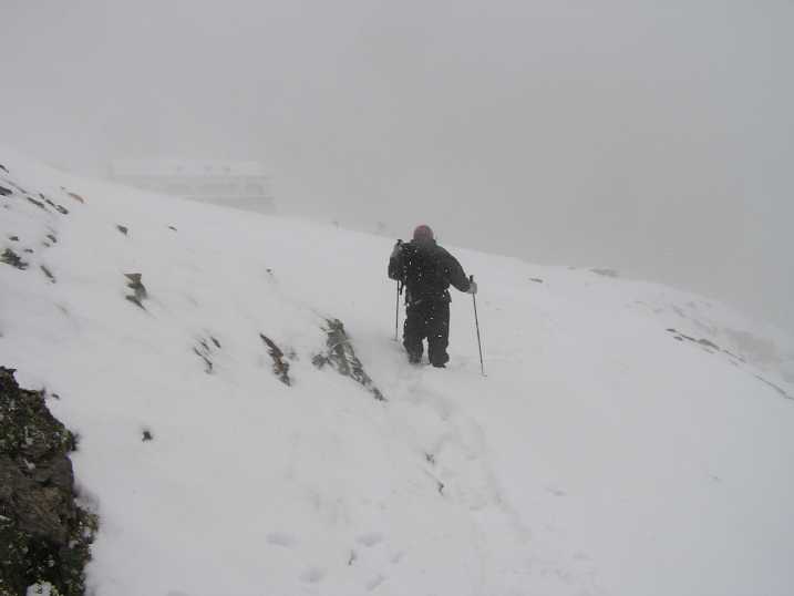 10. AugustDie Vorbereitung:7. – 9. AugustUm gut akklimatisiert zu sein, dachten wir, es wäre sicher ein Vorteil, wenn wir vor der Reise schon ein bisschen „Höhenluft“ schnuppern. So haben wir beschlossen, auf den Sonnblick zu gehen und uns im Zittelhaus auf 3102m einzuquartieren. Von dort wollten wir am nächsten Tag auf den Hoch-Arn, dann übers Schareck zum Niedersachsen-Haus. Nur leider: der Wintereinbruch hat es verhindert! Auch gut. Sind wir halt nach Kaprun gefahren und haben uns oberhalb vom Moserboden im Heinrich-Schweiger-Haus 2800m einquartiert. Der Aufstieg bei leichtem Nieselregen war kein Vergnügen, auch der wadentiefe Schnee ab 2500m war nicht lustig. Es war ja angeblich Sommer! 8. August. Wieder Nebel und leichter Schneefall bis Mittag. Dann zeigte sich kurz die Sonne und wir versuchten ein Stück Richtung Forchezkopf aufzusteigen. Durch den Kamin ging es gerade noch, jedoch beim Ausstieg steckte ich im hüfthohen Schnee. Also kehrten wir wieder um. Den Rest des Tages verbrachten wir mit Lesen. 9. August Noch immer keine Wetterbesserung. Sind zum Moserboden abgestiegen, waren auf einen Tratsch in der Hochgebirgsschule bei Charly und Mittagessen im Restaurant am Moserboden. 1 ½ Stunden Aufstieg wieder zum Schweiger-Haus. Abstieg und Heimreise. Fotos siehe hier: